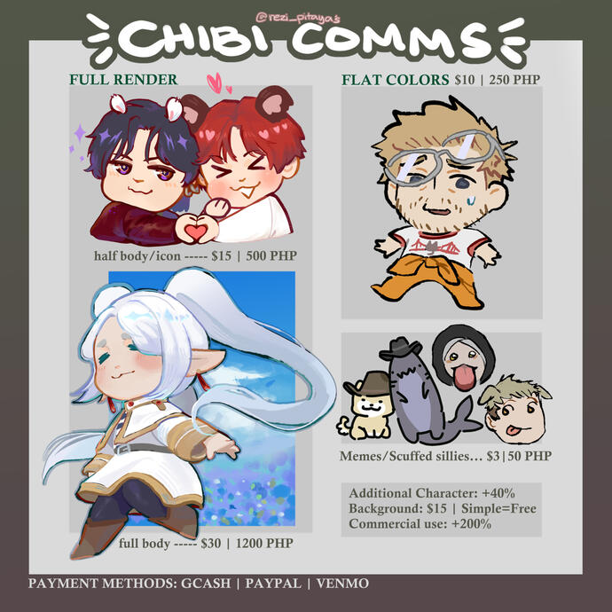 - Commissions will be done in my own style.